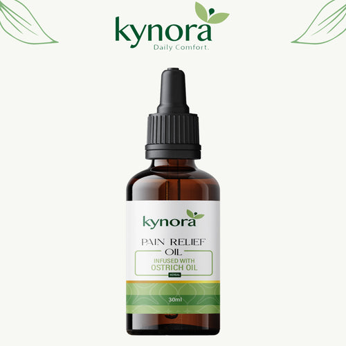 Kaynora Pain Relief Oil is made with a blend of natural herbal oils including Ostrich Oil, Wintergreen Oil, Eucalyptus Oil, Peppermint Oil, Ginger Oil, and Turmeric Oil. Each ingredient is selected for its soothing and muscle-relaxing properties.